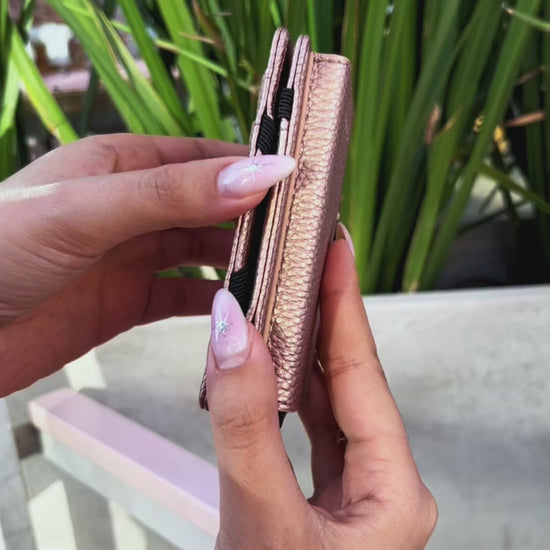 Con un gatillo para presentar las tarjetas y bandas para guardar billetes de forma mágica, la Magic Wallet de Final Stone revoluciona las billeteras. Capacidad: hasta 7 tarjetas en el compartimento Pop-Up + 4 bolsillos extra (hasta 12 tarjetas en total), todos con protección anticlonación.