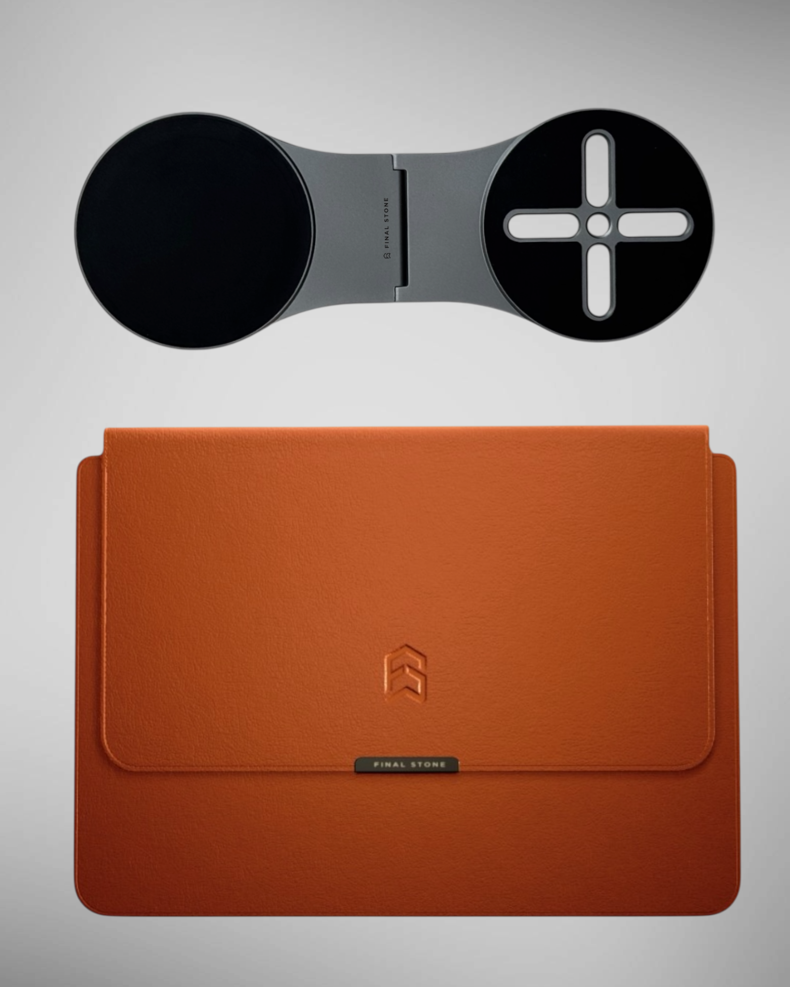 La Funda Set-Up se transforma en soporte ergonómico para tu laptop: mejor postura, mejores manos, mejor foco. El MagStand vincula tu teléfono a la computadora: notificaciones a la vista, cámara elevada y multitarea natural.