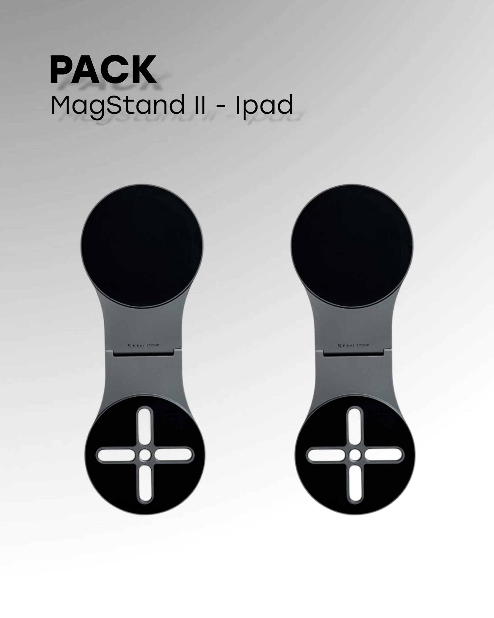 Este pack incluye dos soportes magnéticos de alta precisión: uno se adhiere a tu laptop, el otro a tu iPad, creando una conexión sólida y ajustable. Sin cables. Sin bases voluminosas. Solo el equilibrio perfecto entre funcionalidad y diseño.